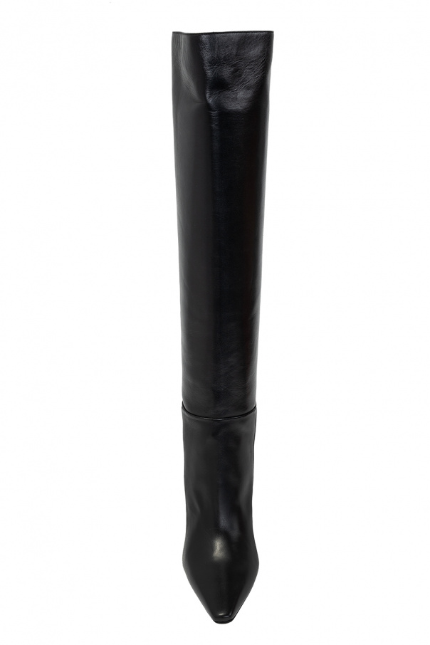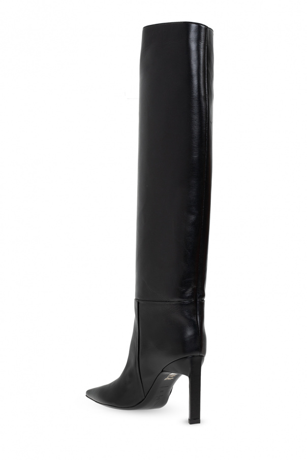 Black ‘Vitto’ knee-high boots from The Attico. Crafted from leather, they feature a pointed toe silhouette and a black leather sole.