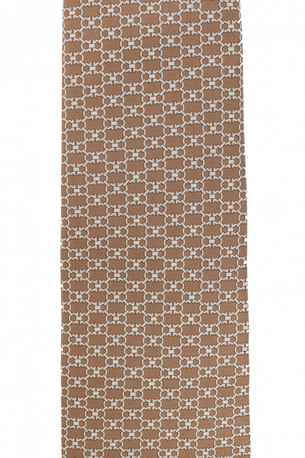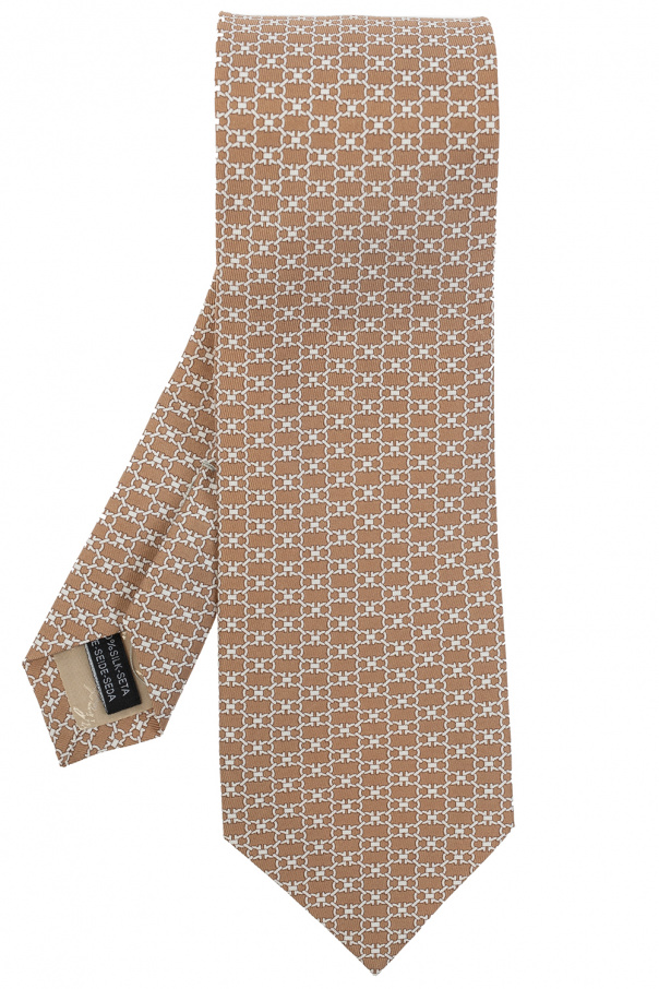 Beige tie from Salvatore Ferragamo. Made of silk, this item showcases a white pattern with the brand's signature Gancini motif.