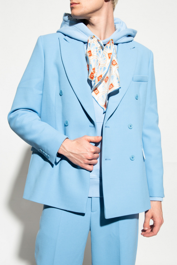 Light blue blazer from Casablanca. Crafted from wool with a double-breasted silhouette, this style features button fastenings, one slip pocket and two flapped pockets on the front, peak lapels, button cuffs and a white lining.