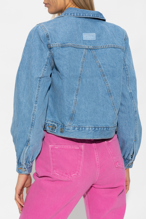 Blue denim jacket from Ganni. Crafted from organic cotton, this design features button fastenings, logo patch at the back, two flap pockets, one slip pocket and long sleeves.
