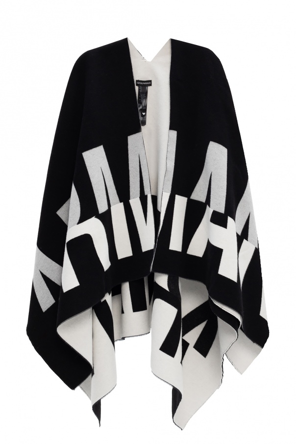 Black poncho with a cream logo embroidery from Emporio Armani.