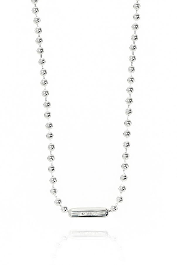 Silver necklace with an embossed logo from Ambush.