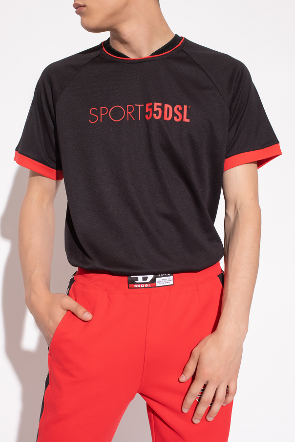 Black and red ‘AMTEE-CROSSOON’ T-shirt from Diesel, the ‘Diesel Sport’ collection. This short sleeve design features a logo print and ribbed crew neck.