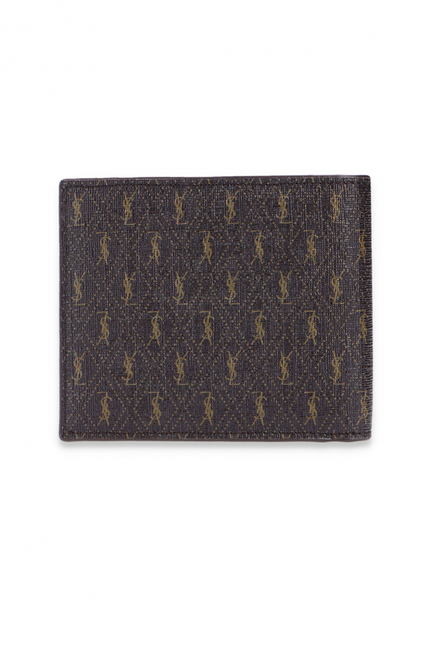 Dark brown ‘Le Monogramme East/West’ folding wallet from Saint Laurent. Crafted from canvas with an all-over monogram print in gold-tone, this design features a brown-clad interior with two bill compartments, one slip pocket and eight card slots.