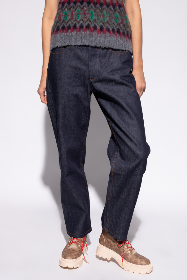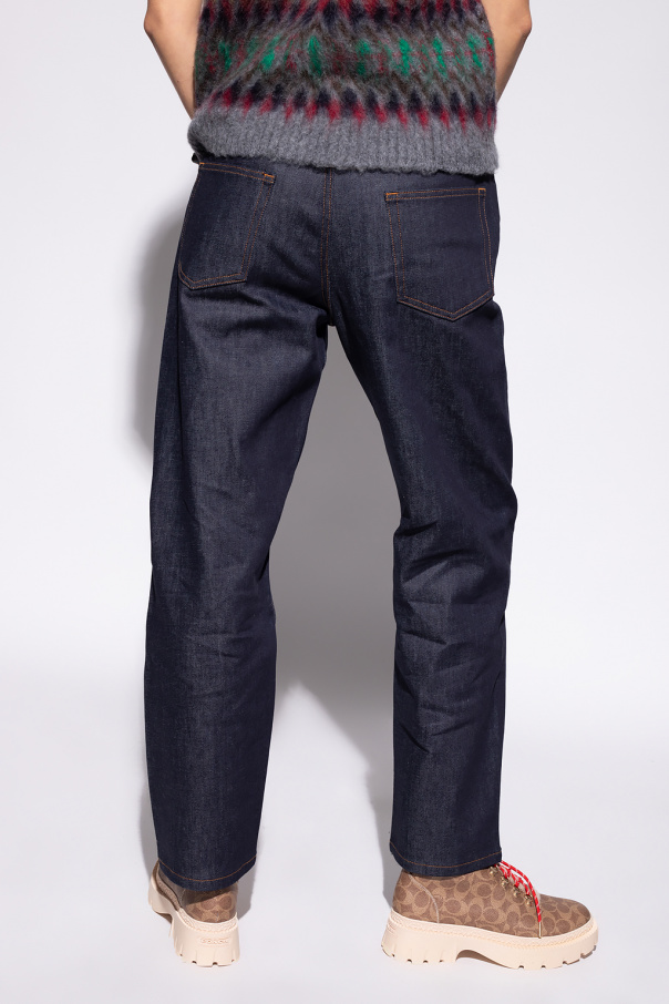 Navy ‘Harbor’ loose-fitting jeans from A.P.C. x Suzanne Koller. Fastened with a zip and button, this pair is complete with three front pockets and two back pockets.