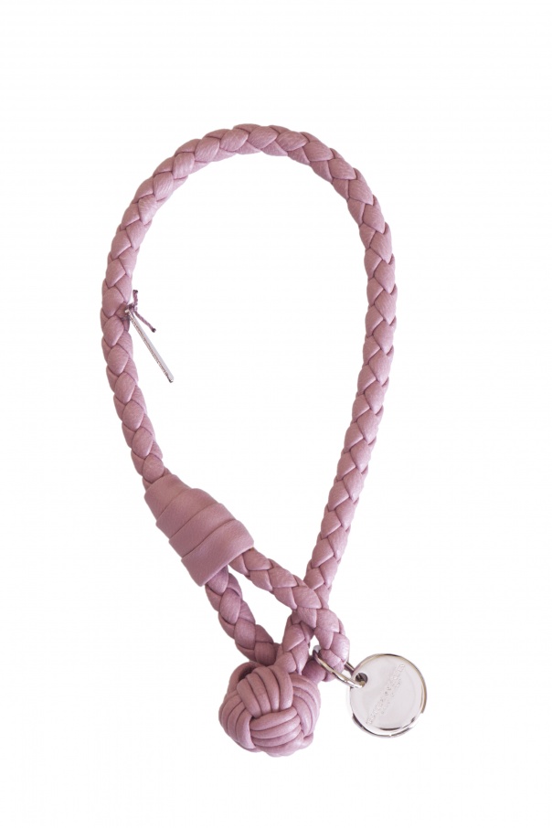 Single-stranded, Bottega Veneta bracelet made of lamb leather in dark pink colour. Finished with brass detalis. Loop fastener with a knot detail.