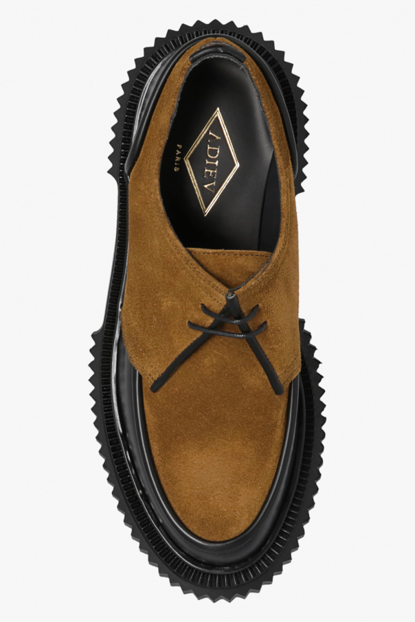 Brown and black ‘Type 181’ shoes from Adieu Paris. Crafted from suede and smooth leather, this lace-up model sits on a black rubber sole.