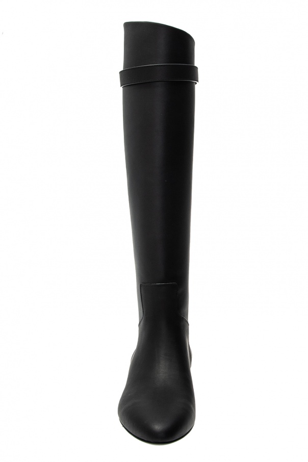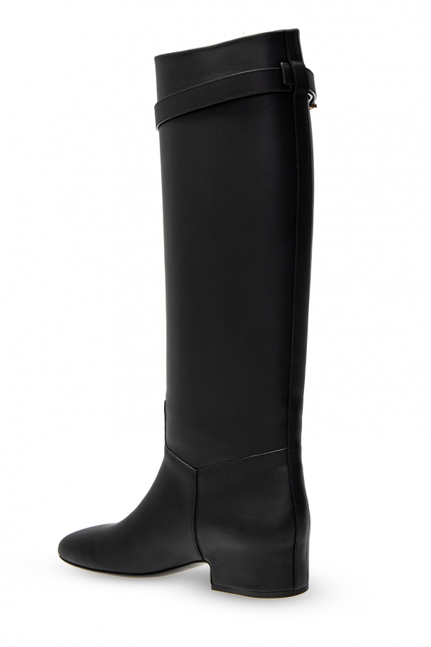 Black knee-high boots from Balmain. Showcasing logo appliqué on the side, this calf leather-crafted pair is set on a black leather sole.