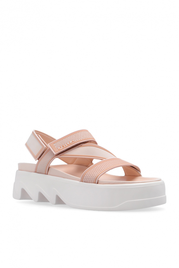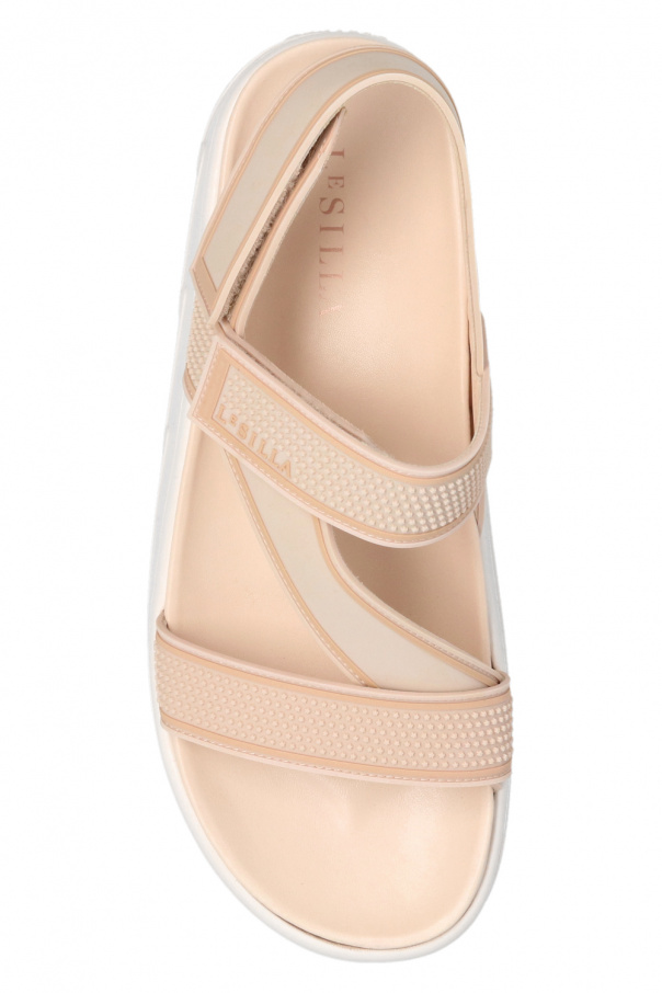 Beige platform sandals from Le Silla. Constructed from rubber straps with velcro closures, this model features logo detailing, a tactile pattern and a beige rubber sole.