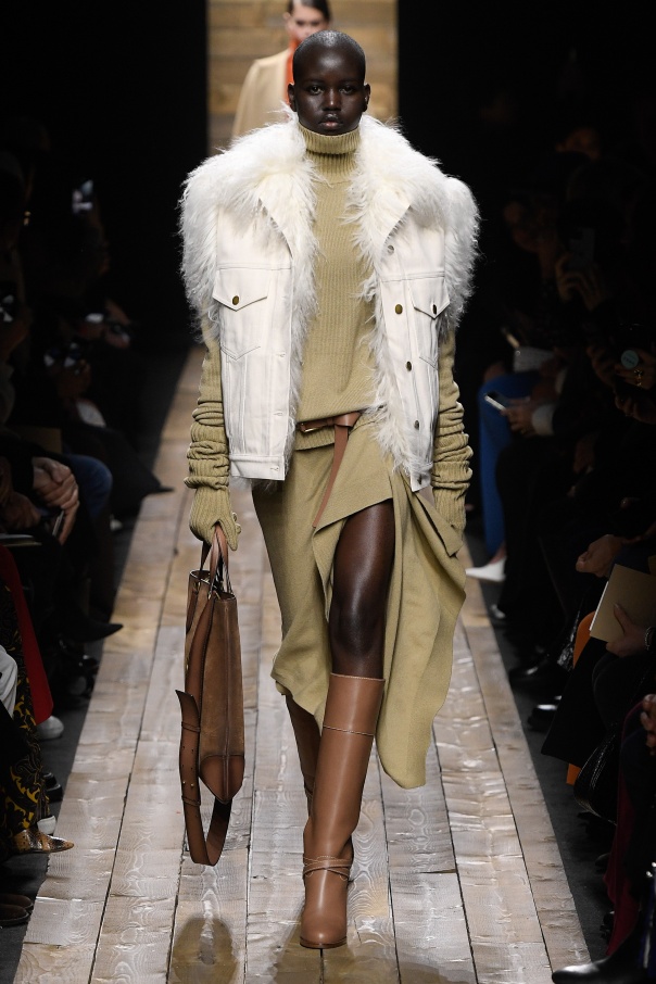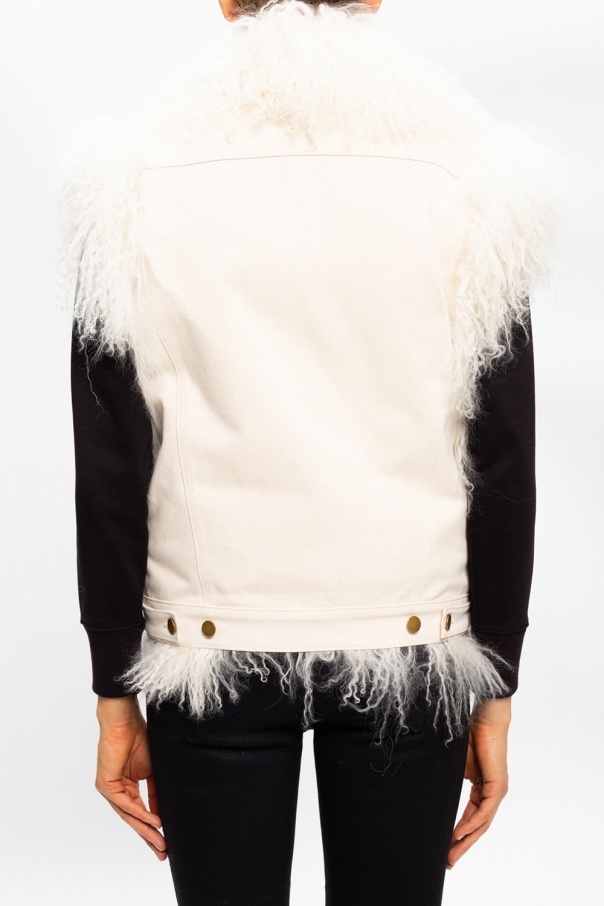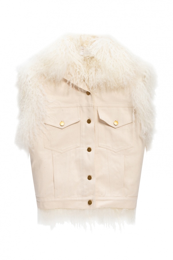 Cream vest from Michael Kors. Crafted from cotton, this design features button fastening, two buttoned flap pockets, two slip pockets and faux fur trims.