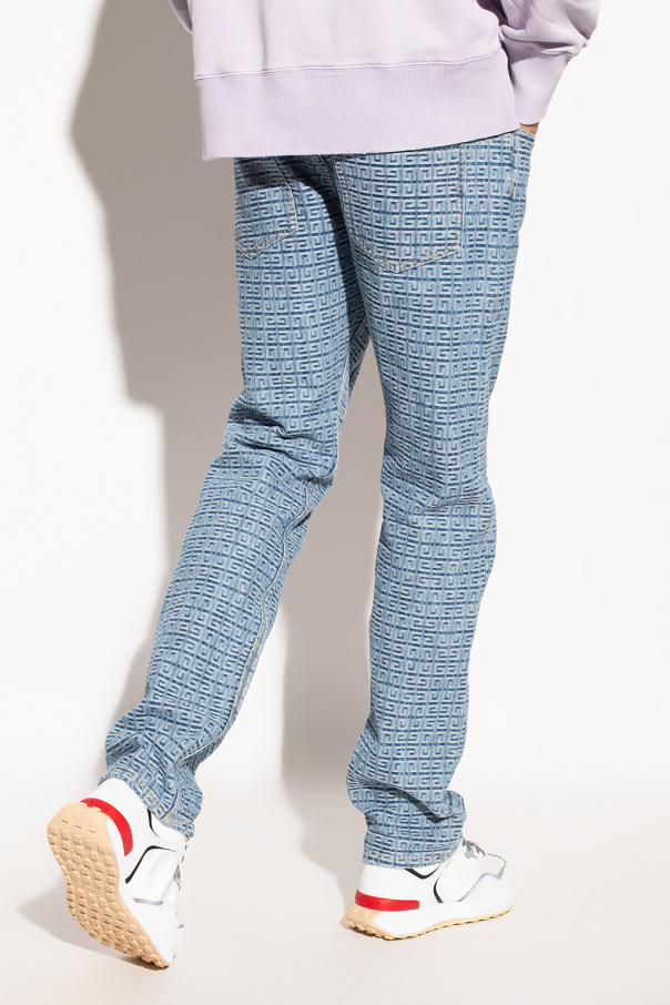 Blue jeans from Givenchy. Falling down with tapered legs, this pair features a zip fly with a button and a hook & eye closure, two slip pockets, two zipped pockets and an embroidered logo graphic.