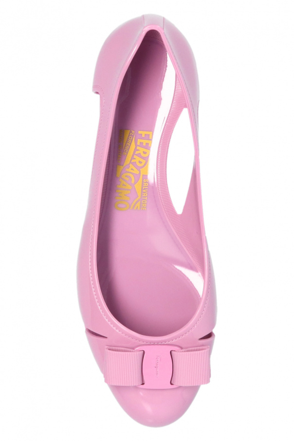 Light purple ‘Vara’ heeled pumps from Salvatore Ferragamo. Made of rubber, this pair is complete with a decorative cut-out and a bow with a logo.