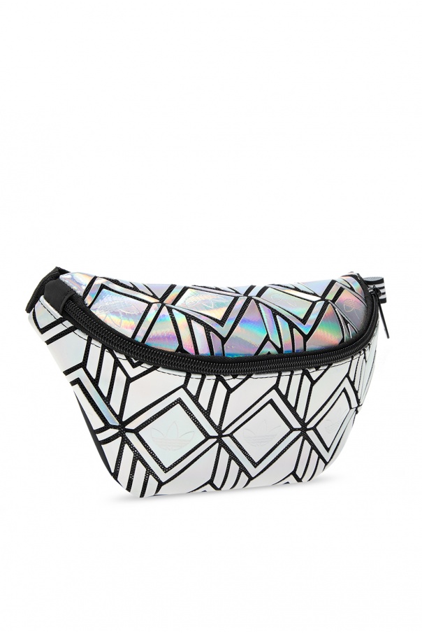 Black and silver-tone belt bag from ADIDAS Originals. Rendered in metallic mesh with a holographic effect and trefoil monogram print, this style fastens via zip and employs an adjustable belt and zip pocket on the inside.