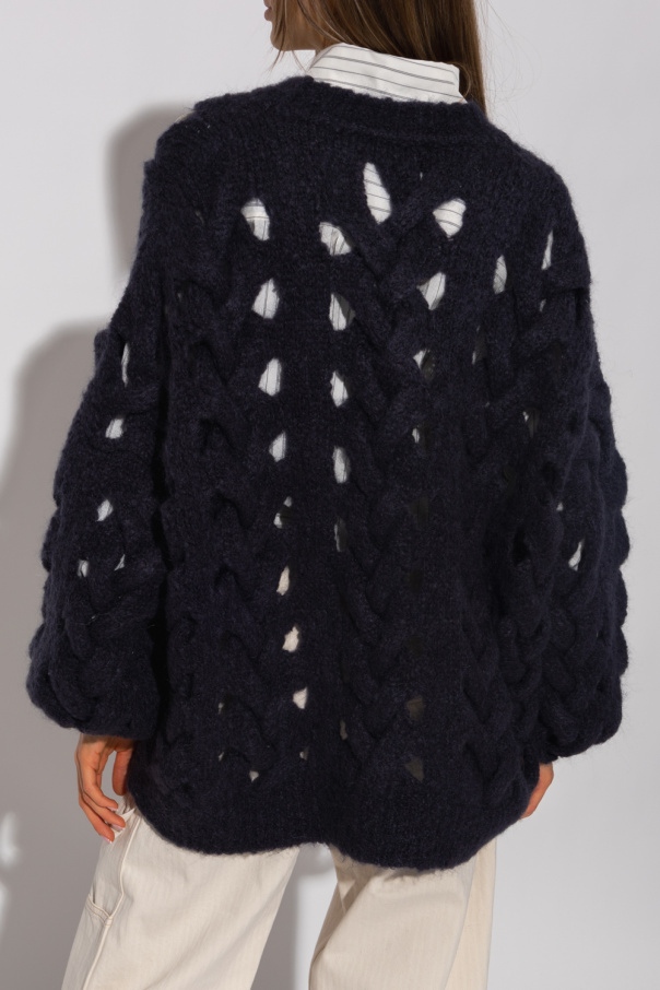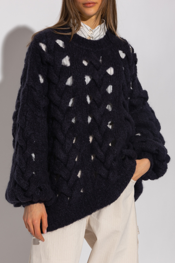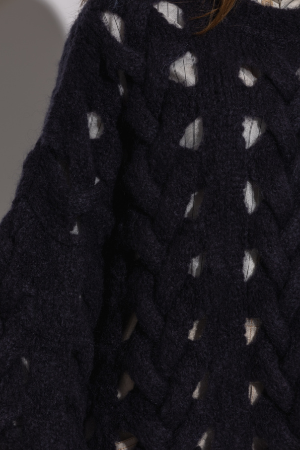Black ‘Ella’ oversize sweater from Isabel Marant. Crafted from a mohair blend, this model features a decorative thick knit and ribbed trims at the neck, hem and cuffs.