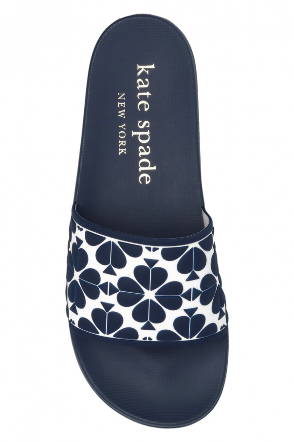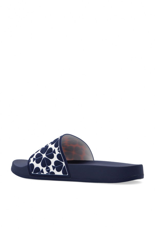 Navy blue and cream ‘Olympia’ slides from Kate Spade. Crafted entirely from rubber, this model showcases a tactile logo.