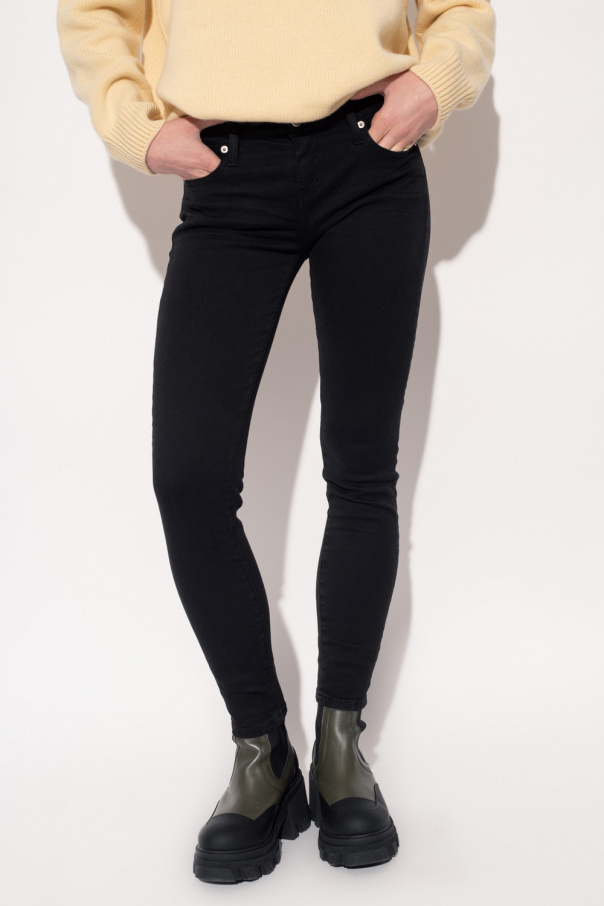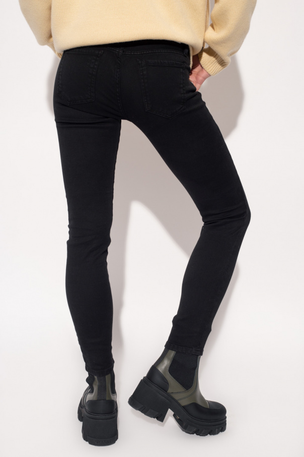 Black jeans from Iro. Made of cotton, this pair falls with tapered legs and features a zip fly with a button, classic five pockets and a white logo patch on the back.