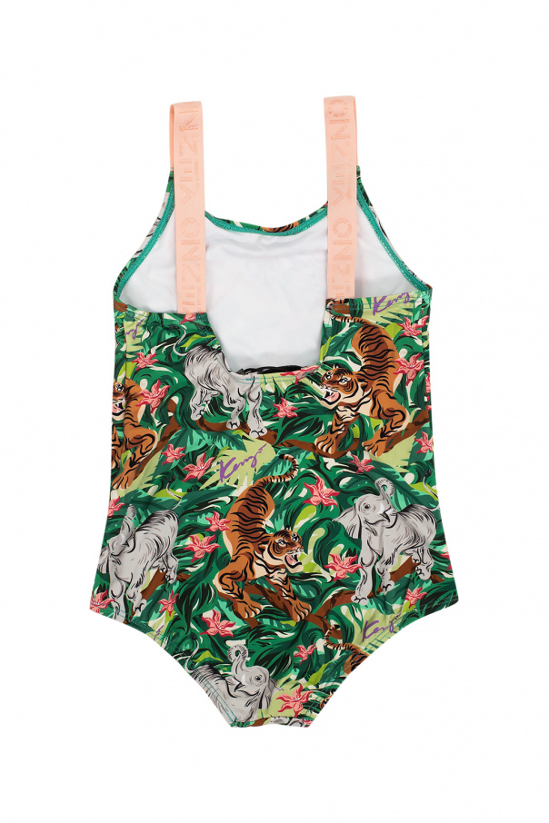 Multicoloured one-piece swimsuit with straps from Kenzo. Crafted from a stretch knit, this item showcases a graphic print and an embroidered logo.