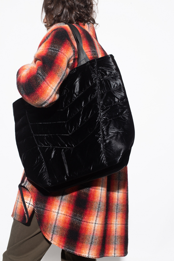 Black quilted shopper bag from Fila. Crafted from textured fabric, this design features a zip fastening, an embroidered logo, two half-round handles and one internal compartment with one zip pocket and two slip pockets.