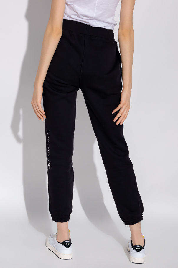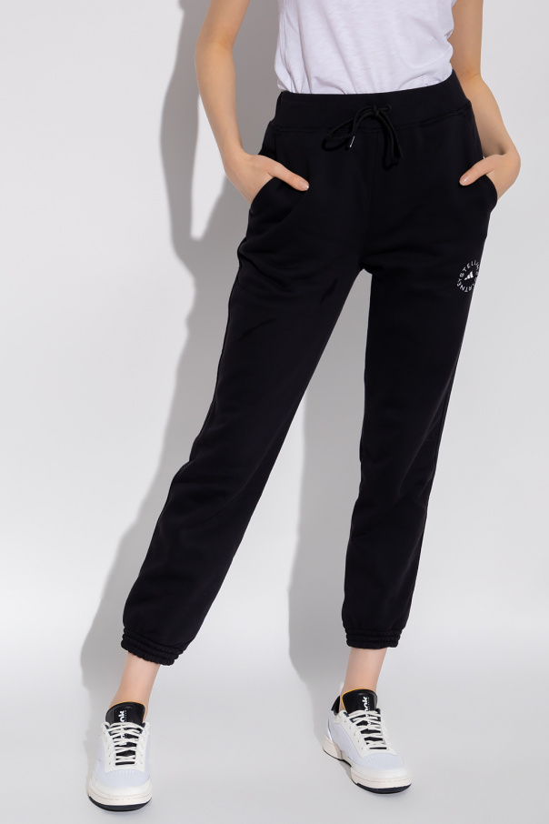 Black sweatpants from ADIDAS by Stella McCartney, the ‘Agent of Kindness’ collection. Made of recycled fabric, this model features a drawstring waist, white logo appliqué, two slip pockets and ribbed cuffs.