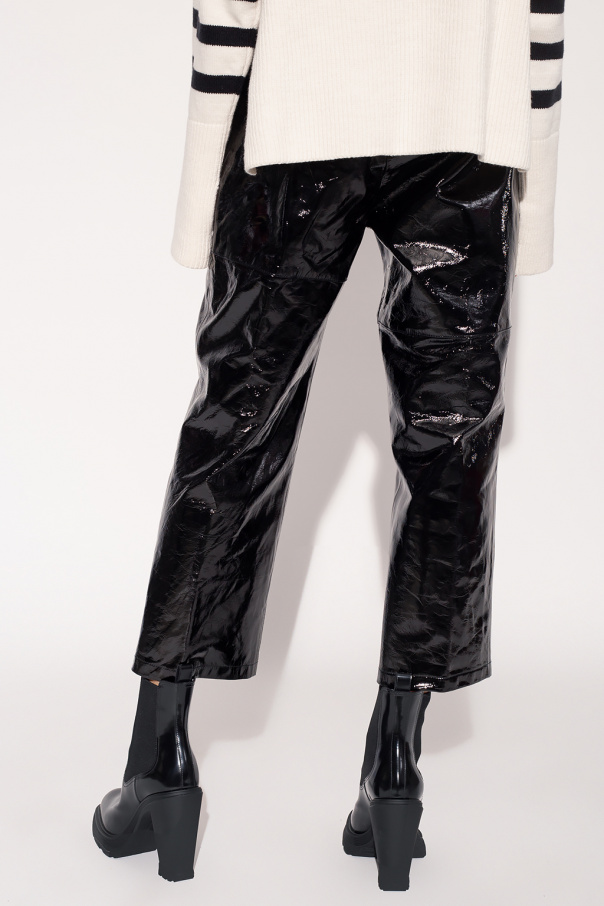 Black ‘Eagle’ trousers from Birgitte Herskind. Crafted from chrome-free patent lamb leather, this pair falls with slightly tapered legs and features two slip pockets and an elastic waist.