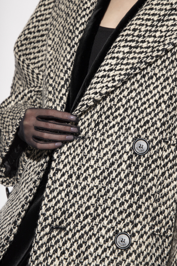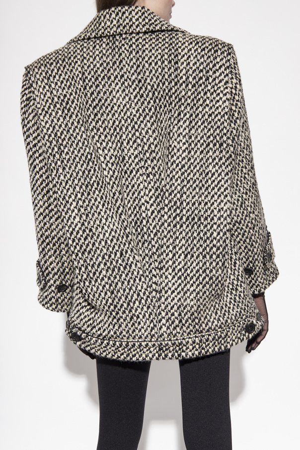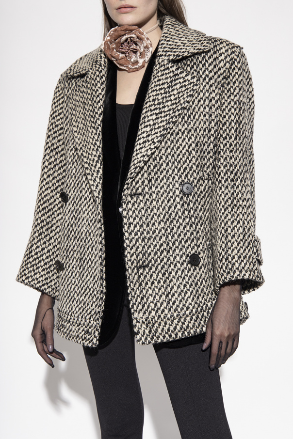 Black and beige double-breasted coat from Saint Laurent. Crafted from wool, this style features notch lapels, button fastenings, two frontal pockets, long sleeves, a silk lining and a decorative pleat at the back.
