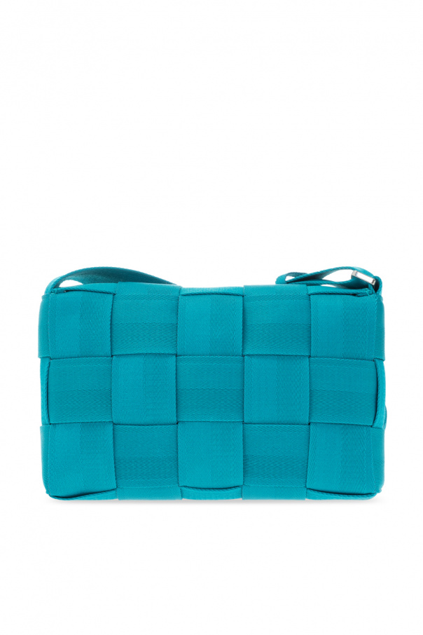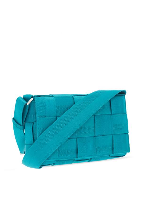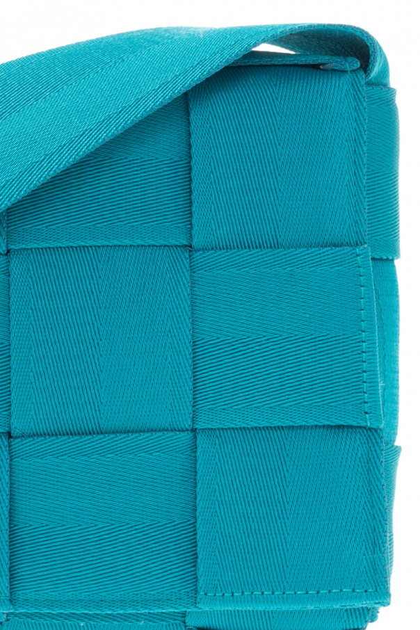 Blueish green ‘Webbing’ shoulder bag from Bottega Veneta. Boasting the brand's iconic ‘Intrecciato’ weave, this item fastens via a magnetic snap and features an adjustable shoulder strap, silver-tone metal hardware and one internal compartment with a slip pocket.