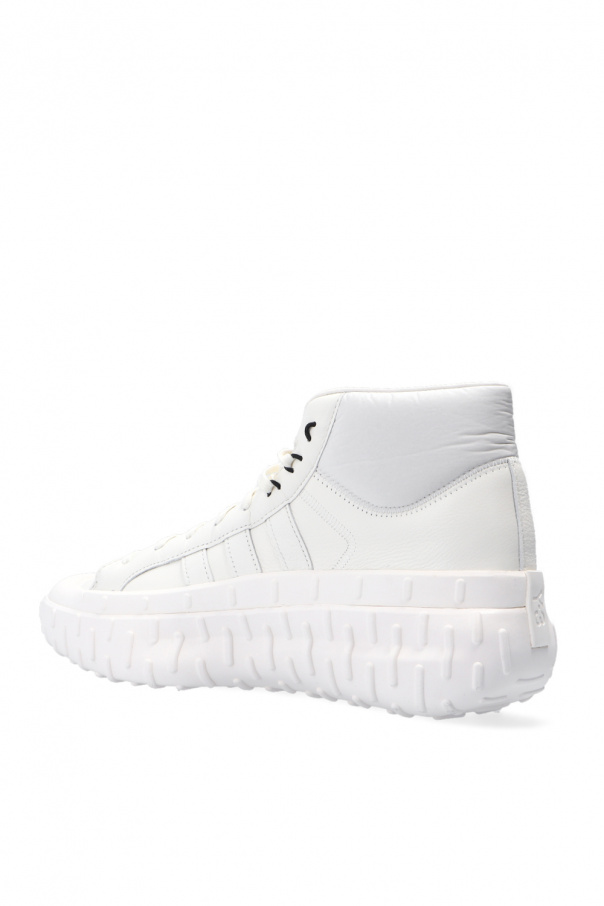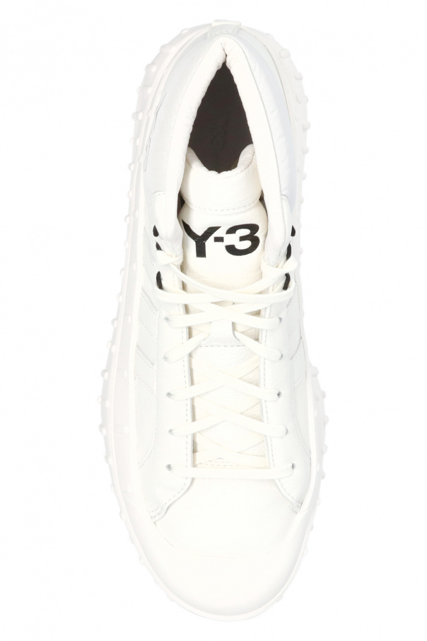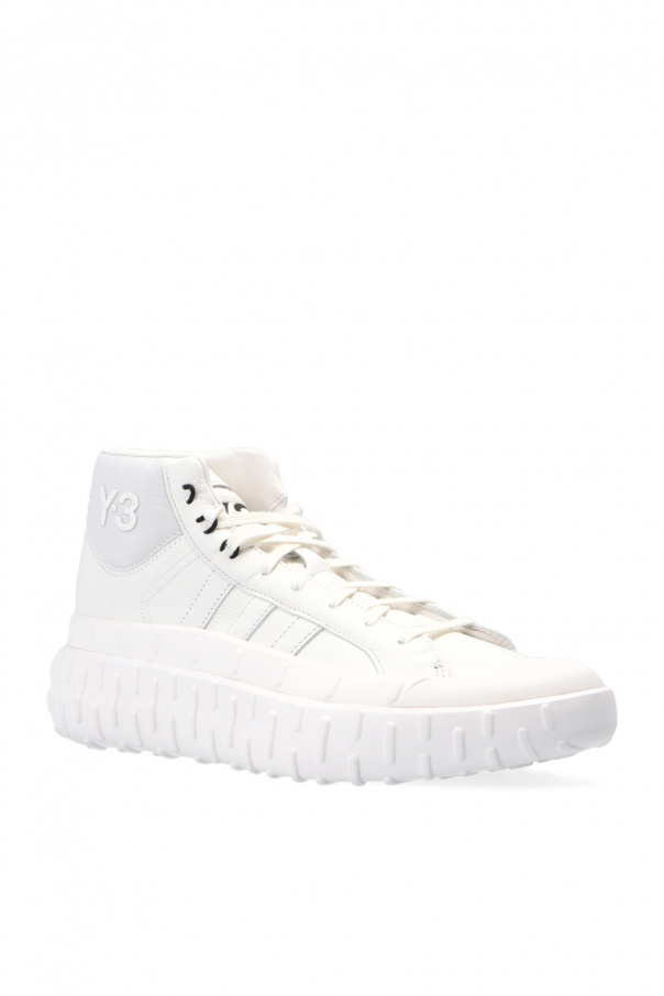 White ‘GR.1P’ high-top sneakers from Y-3 Yohji Yamamoto. Crafted from leather with mesh trims, this lace-up model features a logo embossed on the tongue, EVA midsole and white rubber outsole.