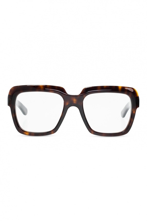 Brown and black eyeglasses from Emmanuelle Khanh. This model features an embossed logo and comes with a case.