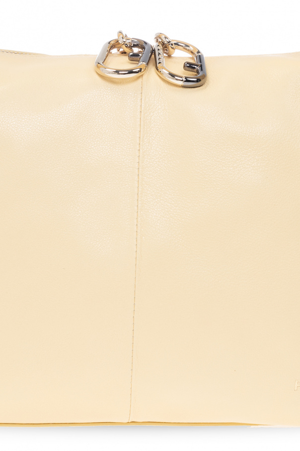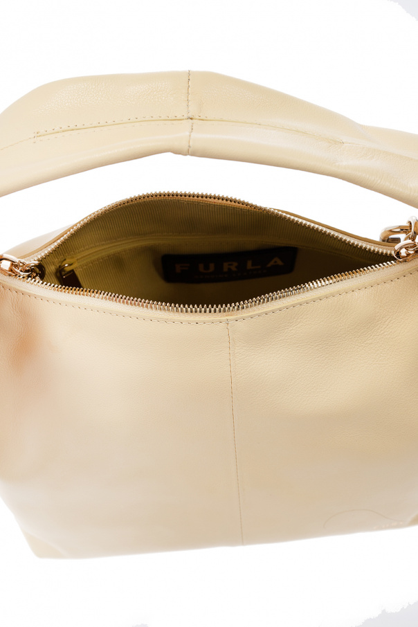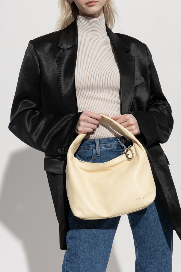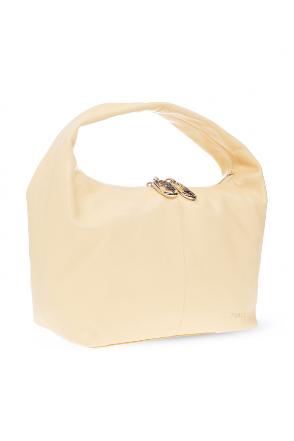 Yellow ‘Ginger Small’ hobo bag from Furla. Made of leather with a glossy and vintage effect, this model features a two-way zip, gold-tone logo, short handle, gold-tone metal hardware and one internal compartment with one slip pocket and one zip pocket.