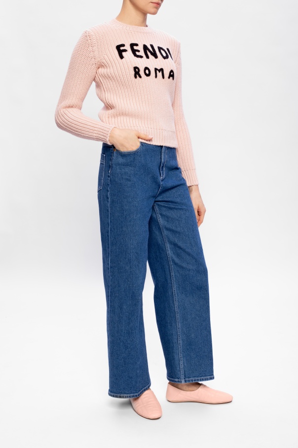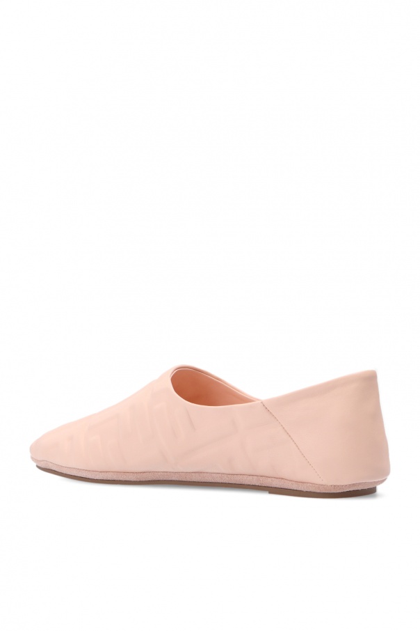 Pink shoes from Fendi. Crafted from leather, this slip-on design features an embossed logo and brown rubber sole.