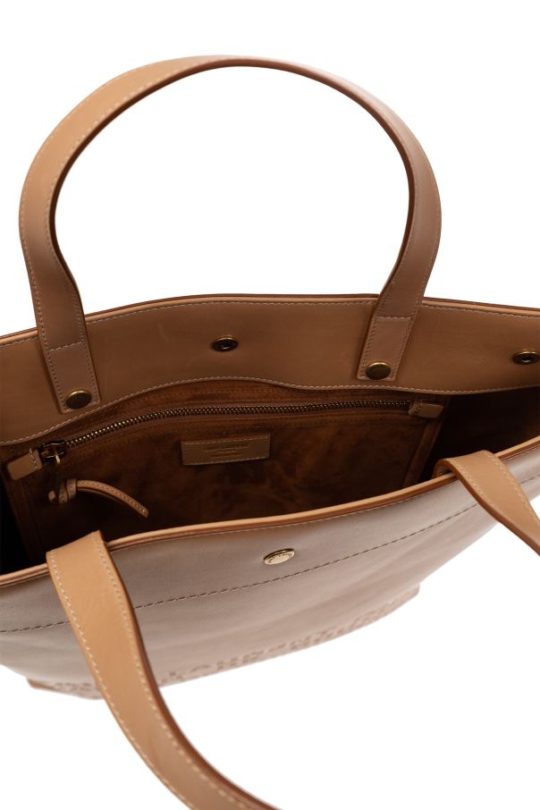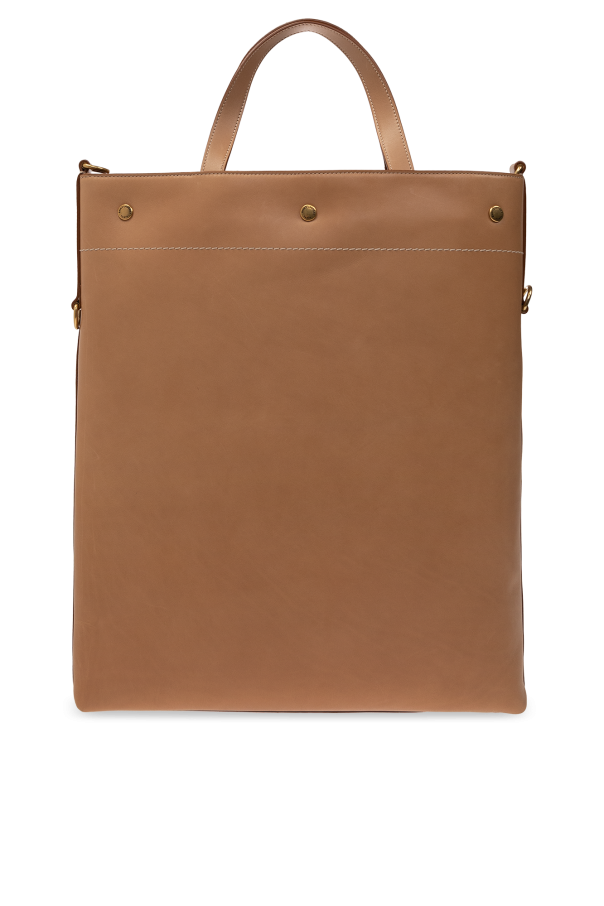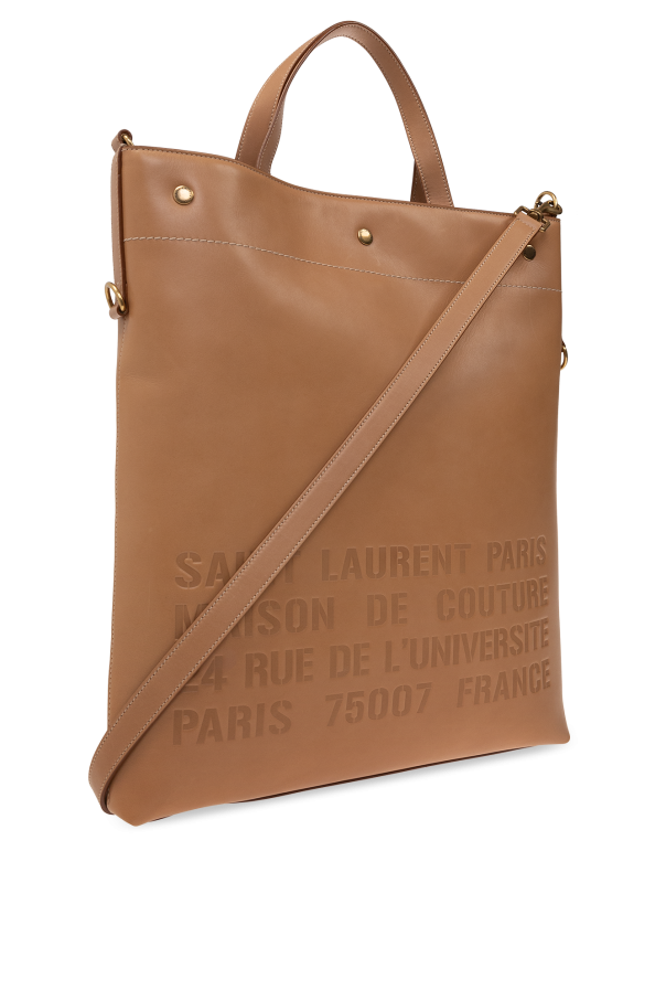 Beige ‘Universite’ shopper bag from Saint Laurent. Crafted from calf leather, this design features a snap closure, embossed lettering, logo, two half-round handles, detachable and adjustable shoulder strap, gold-tone metal hardware and one internal compartment with one zip pocket.