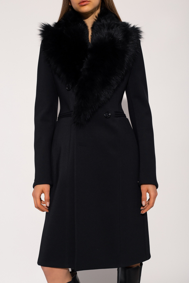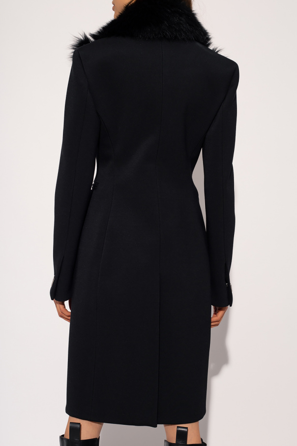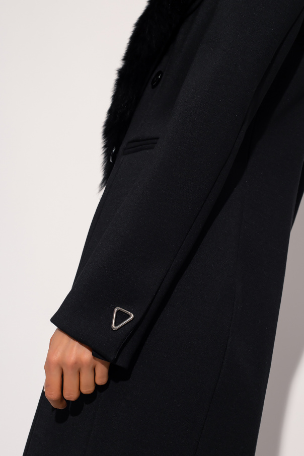Black coat from Bottega Veneta. Fastened with buttons, this garment is complete with three slip pockets and a detachable shearling collar.