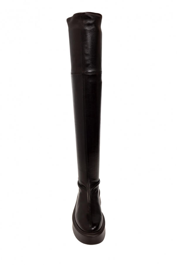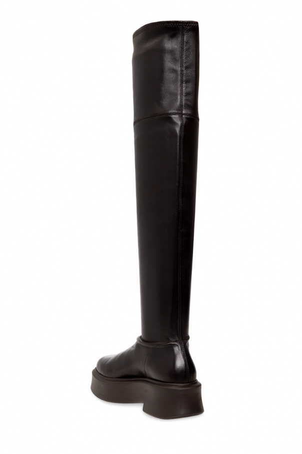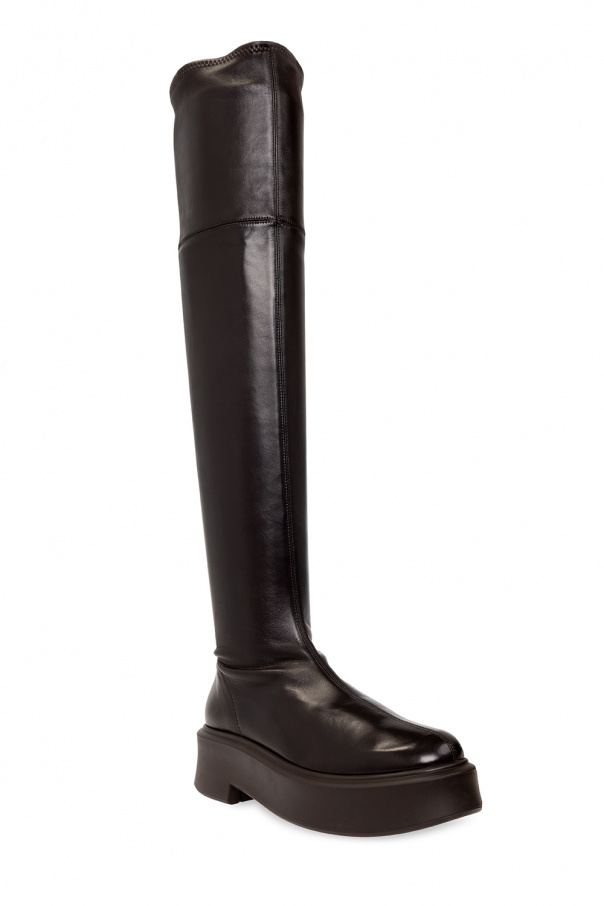 Dark brown boots from The Row. Made of stretch leather, this pair features decorative stitching details and a black rubber sole.