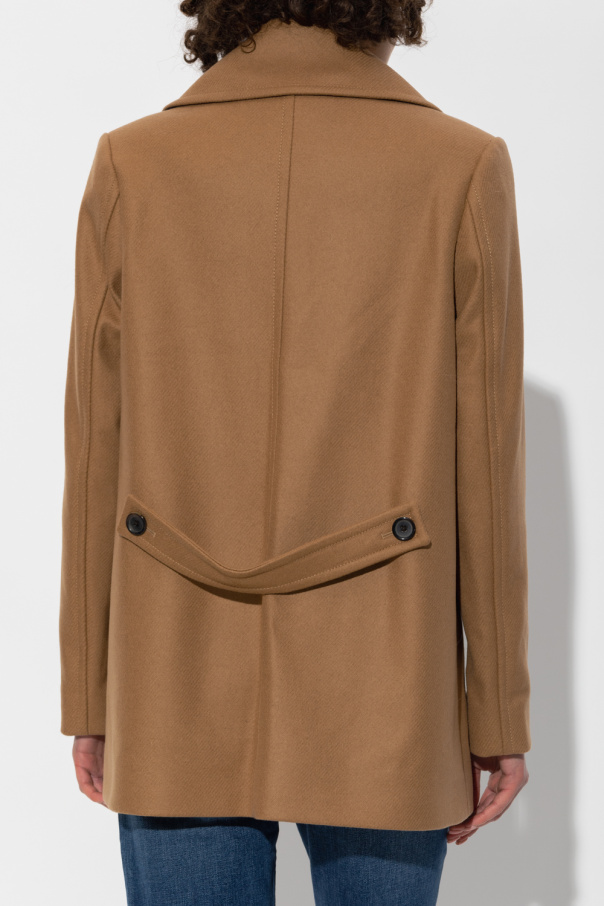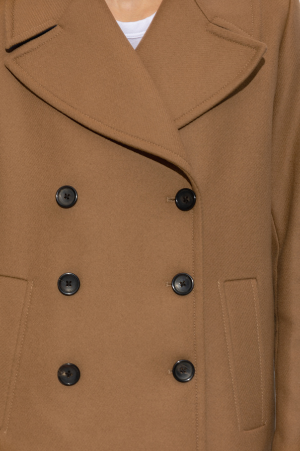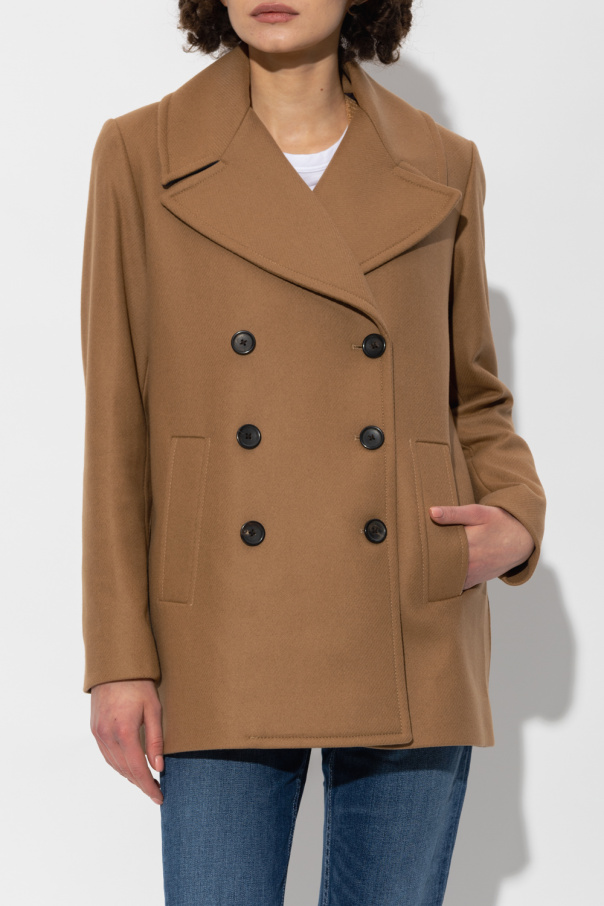 Beige coat from PS Paul Smith. Crafted with a short, double-breasted silhouette, this style features button fastenings, peak lapels, two frontal pockets, long sleeves and a decorative belt at the back.