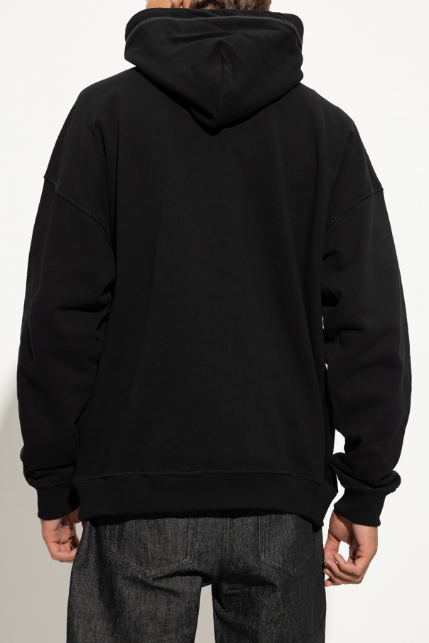Black ‘S-UMMER’ sweatshirt with a drawcord-adjustable hood from Diesel. Crafted from cotton jersey with a relaxed fit, this style features a vintage effect, a printed logo, a kangaroo pocket and ribbed trims on the edges.