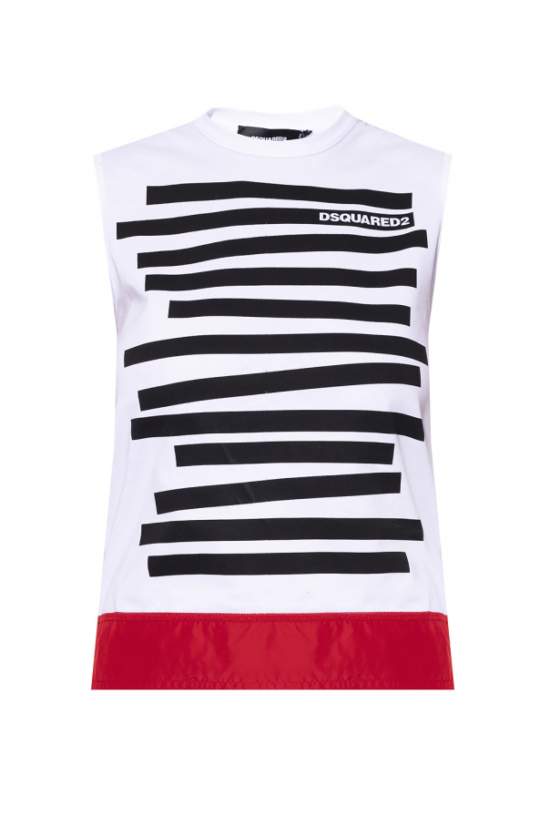 White and red crewneck sleeveless top from Dsquared2. Crafted from cotton, this design is decorated with a black logo print.