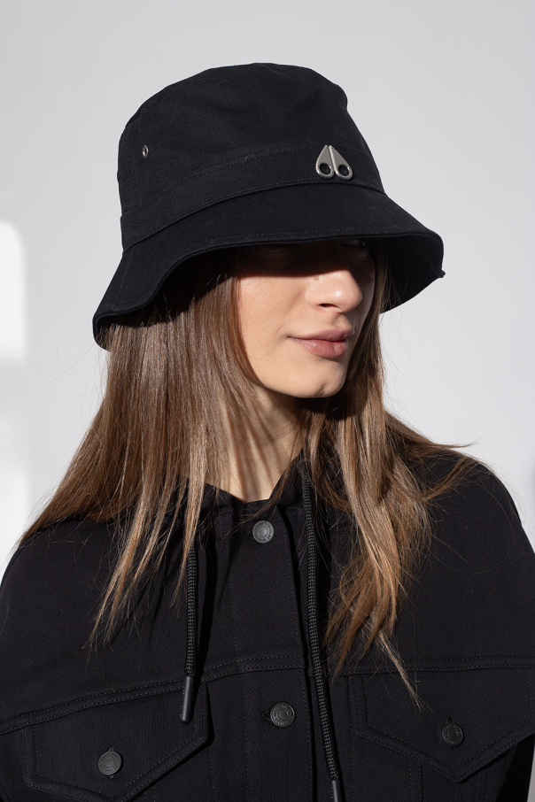 Black bucket bag with a logo appliqué from Moose Knuckles. Made of cotton.