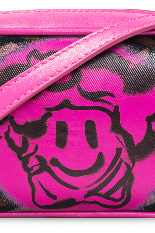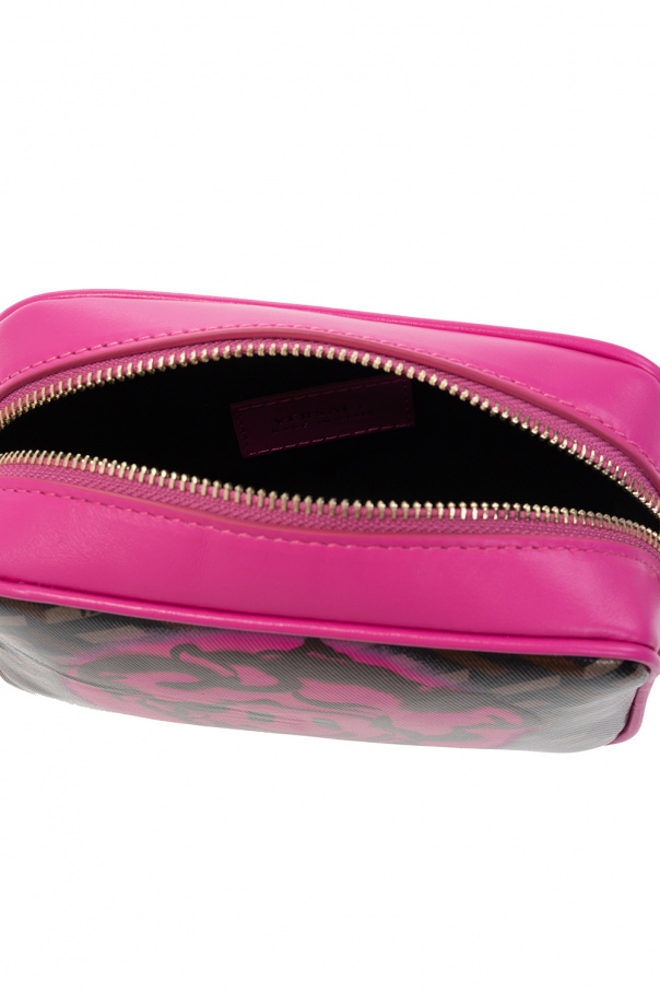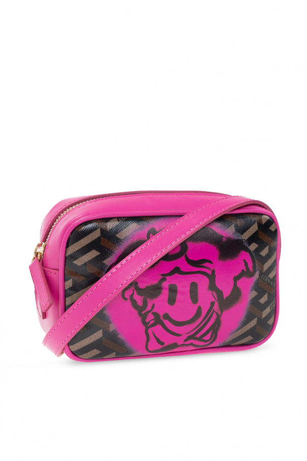 Pink, brown and black shoulder bag from Versace Kid. Embellished with a logo pattern, this item features a zip fastening, an adjustable shoulder strap, gold-tone metal hardware and one internal compartment.