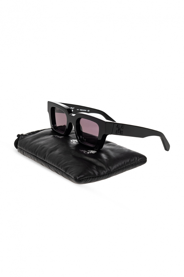 Black ‘Virgil’ sunglasses from Off-White. With square frames, this pair features tactile branding on the temples and black lenses which ensure 100% UV protection. Case included.