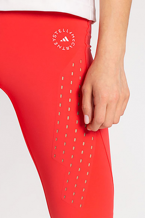 Neon pink leggings from ADIDAS by Stella McCartney, the ‘Primegreen’ line. Crafted from moisture-absorbing AEROREADY fabric with a high-waisted, cropped silhouette, this pair showcases a white logo print, laser-cut openwork details and a single zip pocket. The Primegreen line uses recycled materials in the production of high-quality products.