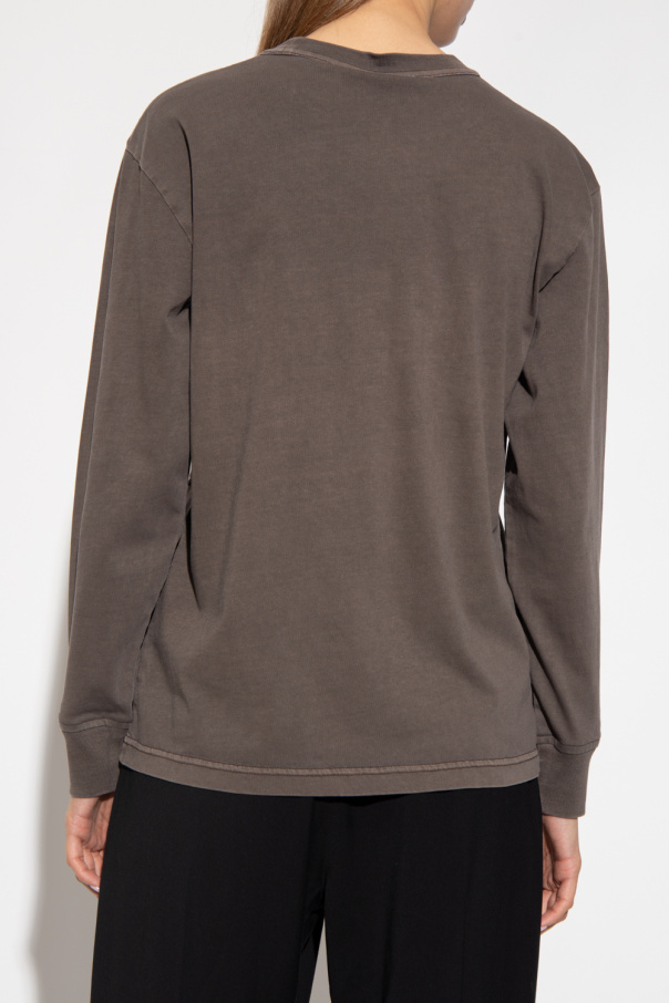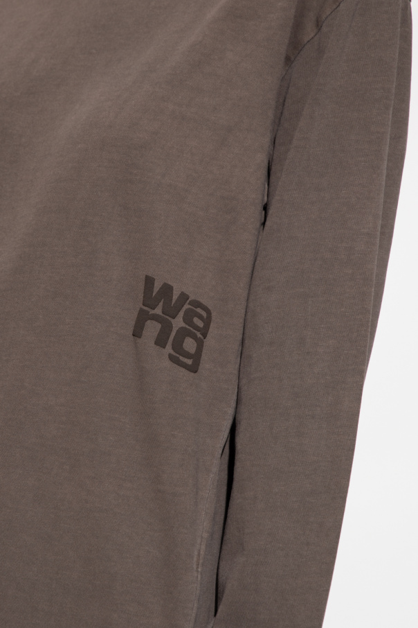 Brown crewneck T-shirt from Alexander Wang. Made of cotton, this style features long sleeves and the designer's logo printed on the front.