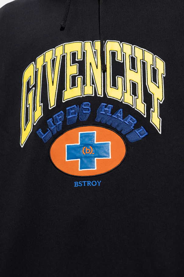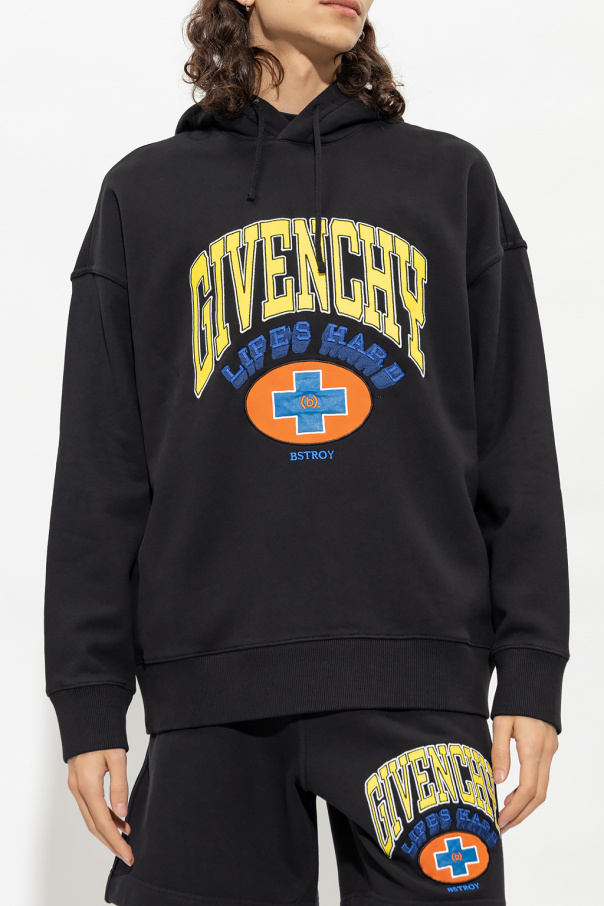 Black hoodie from Givenchy. Crafted from cotton, this long sleeve design features a drawstring hood, multicolored logo print, two front pockets and ribbed edges.