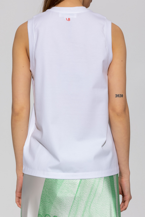 White sleeveless T-shirt from Victoria Beckham. Crafted from organic cotton, this garment features a light blue and embroidered monogram at the back.