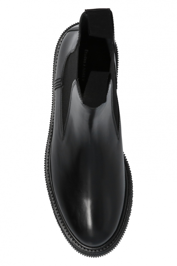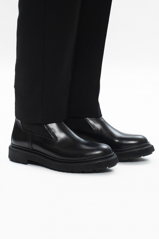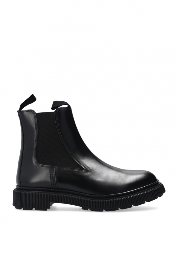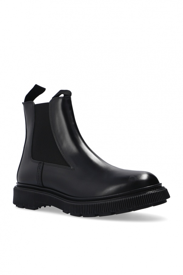 Silver-tone and black slip-on boots from Adieu Paris. Set on a textured rubber sole in black, this leather-crafted pair features a grosgrain pull strap at the back and a printed logo in black.