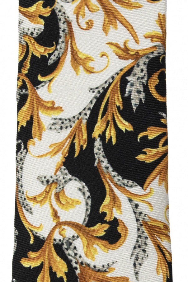 Black, white and yellow tie from Versace. Decorated with a printed pattern.