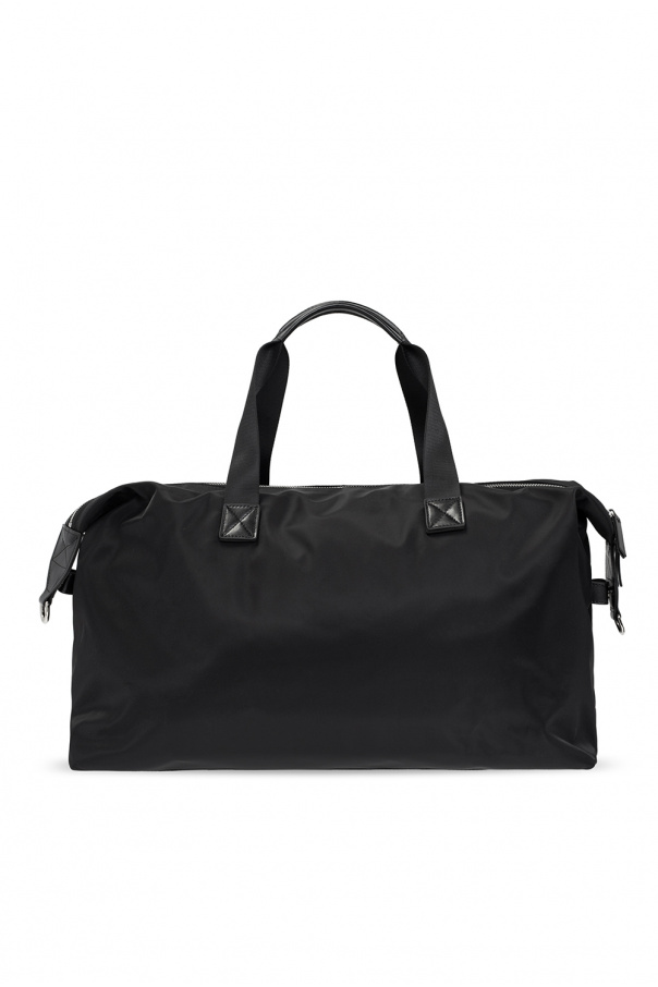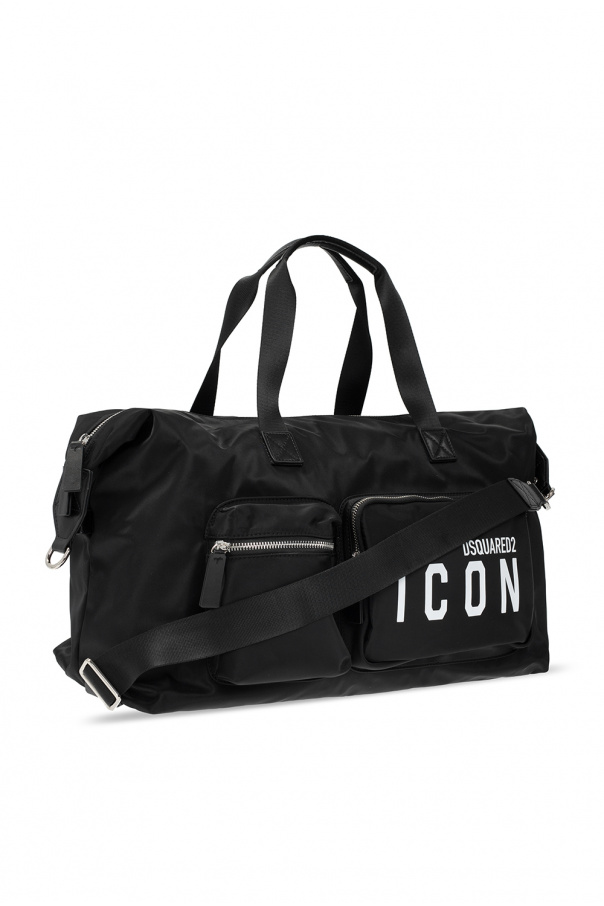 Black holdall bag from Dsquared2. Fastened with a two-way zip, this design features two zip pockets, white logo print, two half-round handles, detachable and adjustable strap, silver-tone metal hardware and one internal compartment with one zip pocket and two slip pockets.