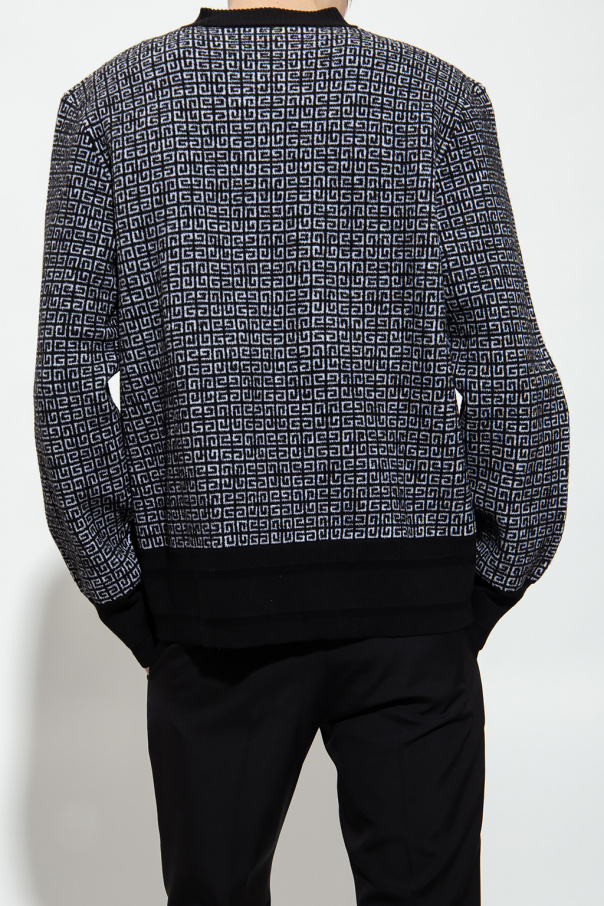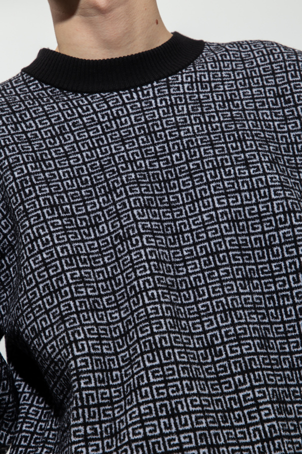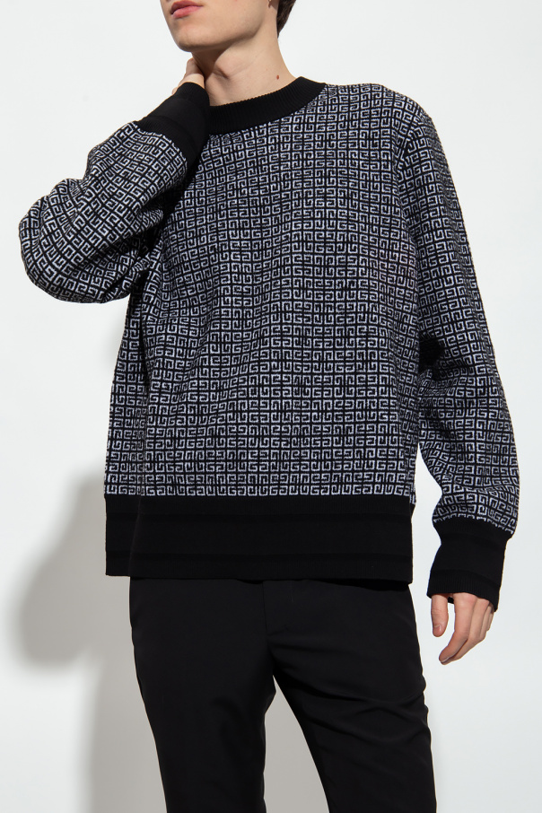 Black and white crewneck sweater from Givenchy x Chito. Made of a wool blend, this style showcases the 4G monogram pattern and ribbed trims on the collar, bottom hem and cuffs.