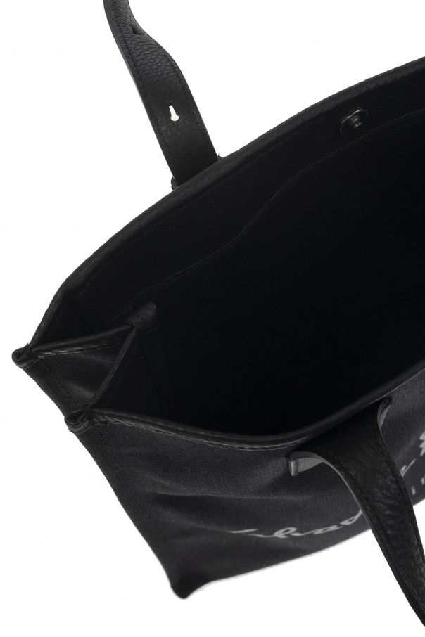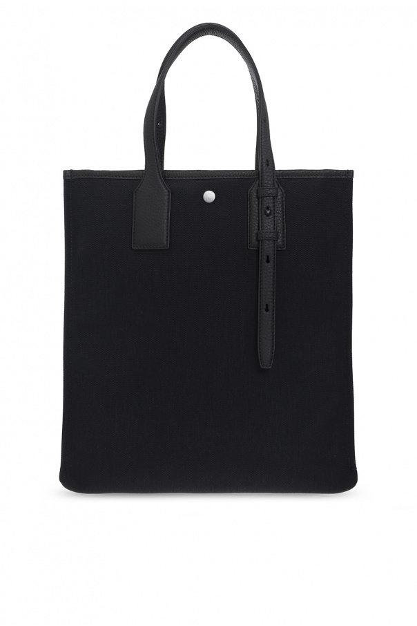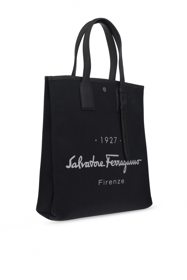 Black shopper bag from Salvatore Ferragamo. Fastened with snaps, it has two adjustable half-round handles and one internal compartment.