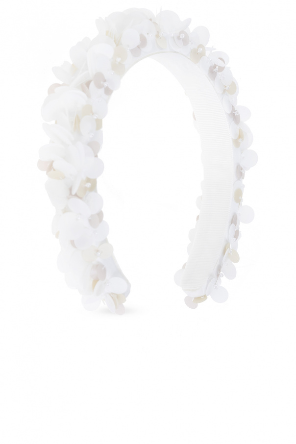 White headbands with a white, beige and blush pink round appliqués from Bonpoint.