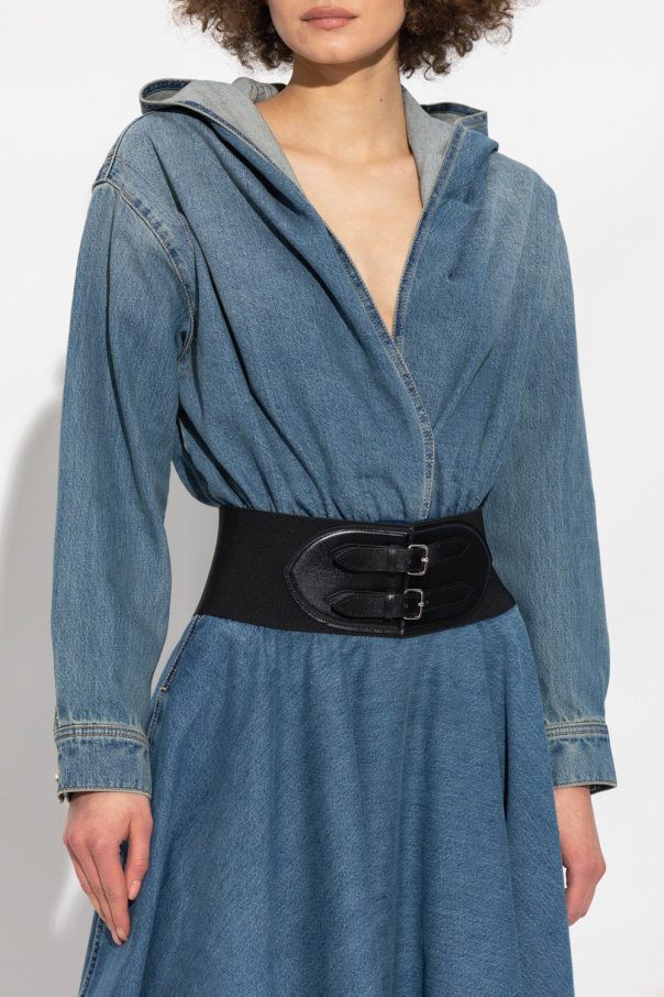 Blue hooded denim body with a vintage effect from Alaia. Fastened with snaps, this V-neck design has long sleeves with buttoned cuffs.